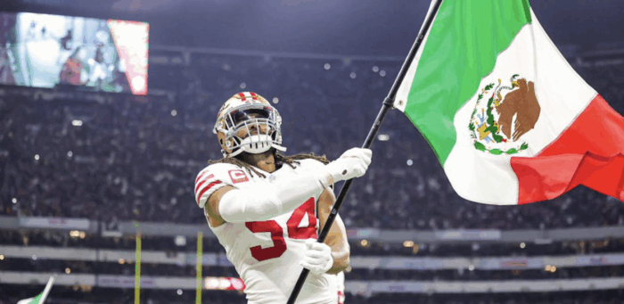 El 2 de octubre del 2020 se llevó a cabo en el Estadio Azteca el primer partido de temporada regular de la NFL en México, primero fuera de Estados Unidos. Fue un Sunday Night Football en que San Francisco 49ers se impuso 38-10 a Arizona Cardinals, una fiesta total en el escenario capitalino amenizada por el Grupo Firme.