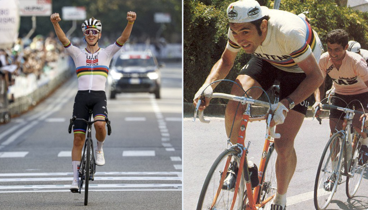 Para domar las estadísticas, debería también sumar otro maillot arco iris en ruta, pues Merckx se coronó tres veces como campeón del Mundo, una más que Pogacar. Y para rematar, al esloveno le espera el velódromo.