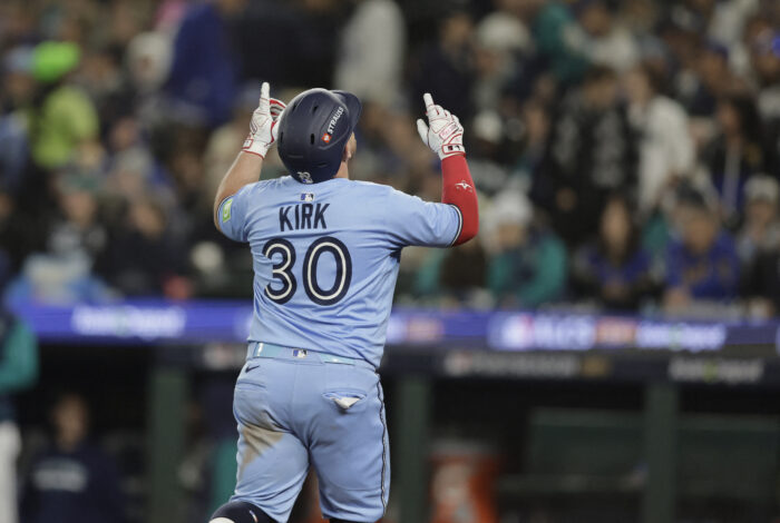 Tras una campaña donde su equipo finalizó con 94 triunfos y 68 derrotas, Kirk se ha convertido en pieza clave para su novena, finalizando la temporada con 15 cuadrangulares.