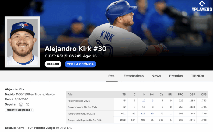 Alejandro Kirk nació un 6 de noviembre de 1998 en Tijuana, Baja California.